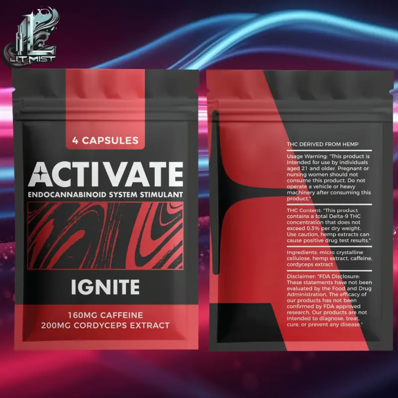Power through your day with Ignite, the ultimate energy and focus capsule. Combining hemp-derived THC with natural cordyceps extract for endurance and caffeine for a clean energy boost, Ignite helps you conquer your goals without the crash. Perfect for workouts, productivity, or adventures.